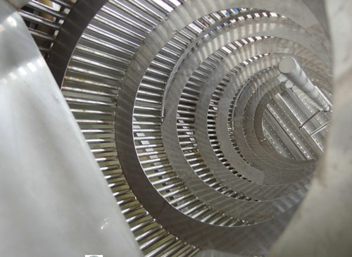該清洗機(jī)采用逆流洗滌原理壓噴淋管,使物料在整個(gè)翻轉(zhuǎn)移動(dòng)的過程中又受到高壓水的噴淋沖洗,清洗效果好,可有效除泥、除沙。清洗后的物料由清洗槽內(nèi)的提升機(jī)提升到下道工序。,物料從進(jìn)口流入清洗機(jī)滾筒內(nèi),隨著滾筒內(nèi)壁的螺旋轉(zhuǎn)動(dòng)至出口,而清洗槽內(nèi)的水,在滾筒內(nèi)螺旋的反作用下流向清洗機(jī)進(jìn)口,與物料逆向運(yùn)動(dòng),同時(shí)在滾筒內(nèi)安裝有高