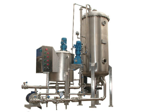 過濾時,首先在過濾盤上形成硅藻土預(yù)涂層。被過濾的液體經(jīng)硅藻土預(yù)涂層時,其中的雜質(zhì)即被阻擋;而純靜的液體經(jīng)過微觀管狀或片狀的間隙以及顆粒之間的間隙通過過濾層,從而起到過濾作用。隨過濾時間的推移,在預(yù)涂層上被濾掉的雜質(zhì)會越來越多,且將阻塞過濾通道。因此在過濾過程中,還需對進(jìn)入過濾罐的被過濾的液體,添加一定劑量相應(yīng)粒度的硅藻土,以維持正常的過濾過程。另外,如果過濾時需要脫色,還需加入一定比例的活性炭。